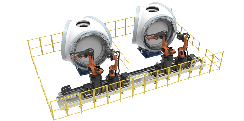 在新能源領(lǐng)域——風(fēng)電行業(yè),必一运动 B-sports智造國內(nèi)首創(chuàng)的機(jī)器人智能螺栓緊固系統(tǒng),擁有多項(xiàng)專利技術(shù),風(fēng)電行業(yè)螺栓緊固系統(tǒng)處于市場(chǎng)領(lǐng)先地位;風(fēng)電主機(jī)裝配用的重載AGV智能化脈動(dòng)生產(chǎn)線,多車聯(lián)動(dòng)技術(shù)獨(dú)樹一幟;風(fēng)電葉片大型曲面智能柔性磨拋技術(shù)、機(jī)架超厚板自動(dòng)化焊接機(jī)器人系...